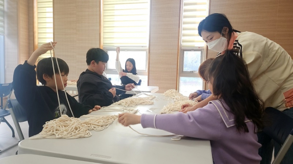 이번 체험에는 도움반 7명과 4학년 8명, 6학년 10명 등 총 25명의 학생들이 참여하여 샌드아트와 마크라메, 책꽂이 만들기 등 다양한 프로그램을 경험했다. 학생들은 각자의 개성과 상상력을 작품으로 표현하며 문화예술의 즐거움을 몸소 느꼈다. 특히 샌드아트 활동에서는 고운 모래를 활용해 자신만의 이야기를 담아내며 섬세한 표현력을 키웠고, 마크라메 깃털행잉 만들기에서는 실을 엮고 매듭짓는 과정을 통해 집중력과 손의 감각을 기를 수 있었다. 또한 책꽂이 만들기 활동은 생활 속에서 활용가능한 작품을 직접 제작함으로써 성취감과 실용성을 동시에 경험하게 했다. 활동에 참여한 한 김모 학생은 “내 손으로 작품을 만들어서 뿌듯했고, 친구들과 함께해서 더 재미있었다”며 환한 미소를 보였다.