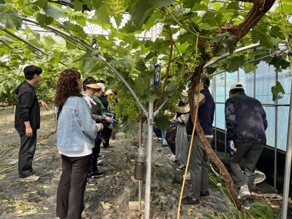 이번 교육은 이달 29일부터 30일까지 총 8회 진행되며, 포도 정예 농업 인력을 양성하고 농촌 인력의 외부 의존도를 낮추어 포도 재배 농업인의 인건비 부담을 덜기 위해 추진된다. 교육 내용은 샤인머스켓 알 솎기 이론 및 실습 교육으로 구성되어 있으며, 관내 포도 농장에서 실습 교육 중심으로 운영되어 농업인이 농촌 인력으로 투입될 때 실습 경험을 바탕으로 무리 없이 농작업에 적응할 수 있도록 할 예정이다.