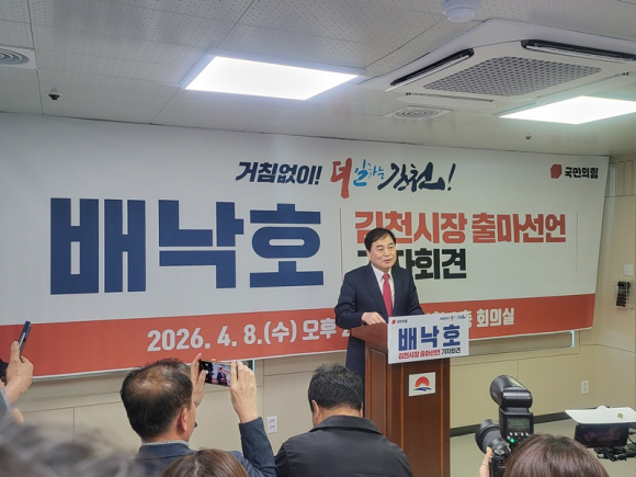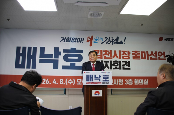 오후 2시 시청 기자회견장에서 열린 출마 선언에서 배 예비후보는 “지난 1년은 김천의 변화를 준비한 시간이었다”며 “이제는 시민이 체감할 수 있는 도약을 만들어야 할 시점”이라고 밝혔다.