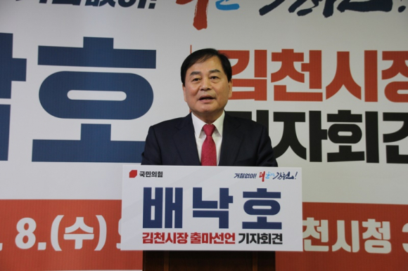 배낙호 김천시장 예비후보가 6월 3일 실시되는 김천시장 선거 출마를 공식 선언하고 본격적인 선거 행보에 돌입했다.