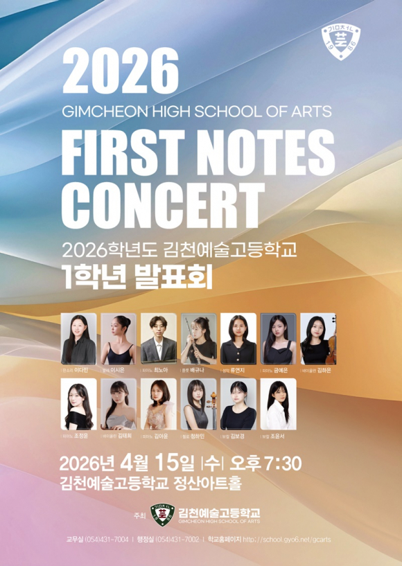 김천예술고등학교(교장 정혜윤)는 4월 15일(수) 오후 7시 30분, 교내 정산홀에서 1학년 발표회를 개최하여 학생들의 전공 실기 역량을 점검하고 무대 경험을 확대하는 시간을 마련한다.