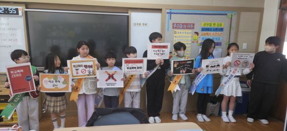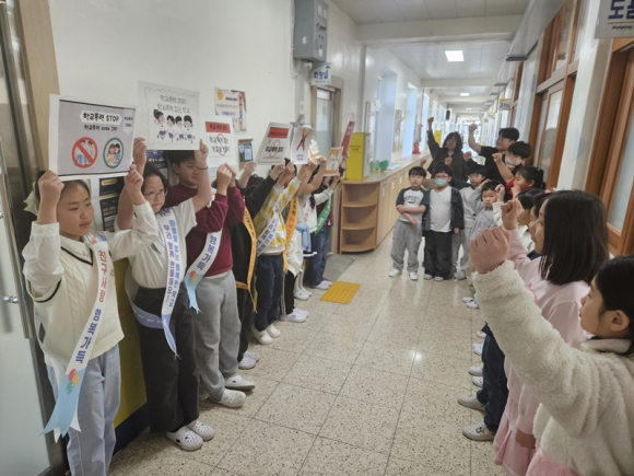 대룡초등학교(교장 김수환)는 4월 8일(수), 학생자치회 주관으로 학교폭력예방 캠페인을 실시하였다.