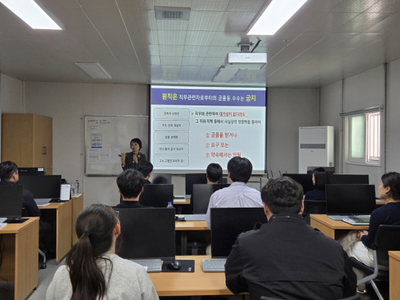 이번 교육은 건축사 및 건축시공기술사 자격증을 보유한 건설 기술인으로서 행정력과 기술력을 겸비한 서울특별시 전략주택공급과 상생주택팀장 박진국 팀장을 초빙하여 진행되었으며, 사업의 기획 단계부터 설계, 시공, 운영 전반에 이르기까지 공공건축 프로세스 전 과정에 걸쳐 실무 중심의 강의로 구성되어 교육의 내실을 기했다. 또한, 기술 직무 교육과 더불어 국민권익위원회 소속 청렴 전문 강사인 박연정 강사와 ‘청렴문화 실천 교육’도 함께 진행하여 부패 없는 청렴한 건설 환경이 안전한 공공시설물 건립의 기본임을 강조하며, 공정하고 투명한 업무 수행을 다짐하는 시간도 함께 가졌다.