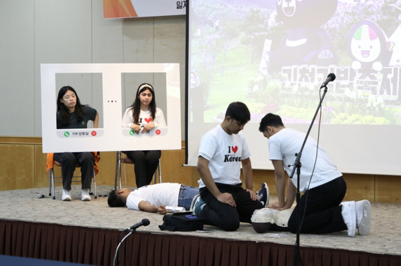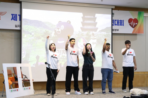 김천소방서는 경북보건대학교 K드림학부 조교와 외국인 재학생 4명으로 팀을 구성해 참가했으며, ‘김천 김밥축제’ 현장에서 심정지 환자가 발생한 상황을 설정한 공연형 시연을 선보였다. 축제라는 지역적 특색을 살린 구성에 더해 외국인 재학생들이 직접 참여한 점이 눈길을 끌며 관람객과 심사위원들로부터 큰 관심을 받았다. 참가자들은 실제 상황을 방불케 하는 시연을 통해 정확한 심폐소생술(CPR) 수행 능력을 보여주며 대회 취지에 부합하는 우수한 평가를 받아 장려상의 영예를 안았다.