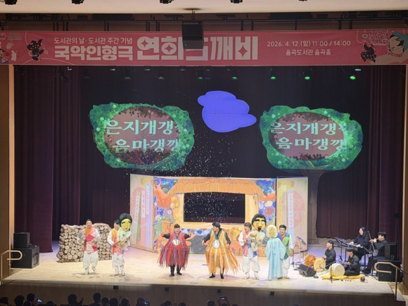 김천시립 율곡도서관(관장 이신기)은 지난 4월 12일(일), ‘도서관의 날’ 및 ‘도서관 주간’을 기념하여 율곡도서관 율곡홀에서 개최한 국악인형극 「연희도깨비」 공연을 시민들의 뜨거운 호응 속에 성공적으로 마쳤다고 밝혔다.