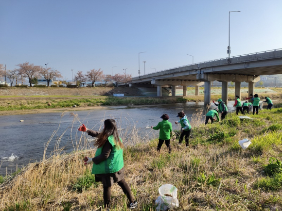 대곡동 새마을지도자협의회 및 새마을부녀회(협의회장 이도희, 부녀회장 박명희)는 지난 4월 11일, 회원 20여 명이 참석한 가운데 직지천 일원에서 EM 흙공 던지기 행사와 하천정화 활동을 실시했다.