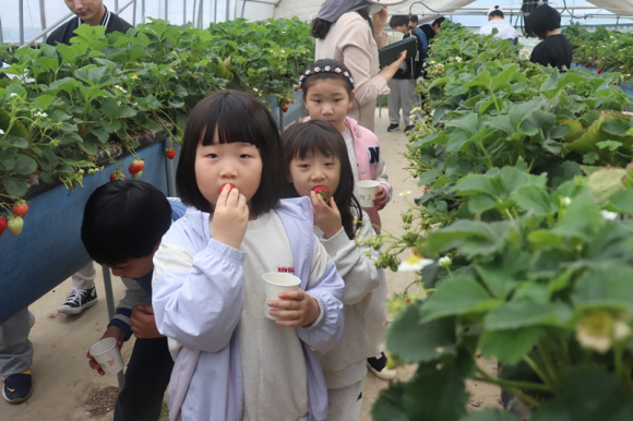 투어 이후 학교 근처에 있는 딸기 농장으로 감천초와 김천동부초 학생이 함께 이동하여 농부에게 딸기 특성과 딸기 재배 방법 등 우리가 평소 마트에서 사 먹는 딸기에 대하여 살아있는 교육을 받고 딸기 하우스에서 마음껏 딸기를 먹기도 하고 각자 한 상자씩 가져갈 수 있도록 딸기를 따서 담았다. 김천동부초 3학년 박모 학생은“감천초에서 친구들과 함께 트램폴린을 타니 너무 신나는 시간이었고, 감천초 학생들과 함께 딸기에 대해서 배우고 체험할 수 있어서 정말 즐거웠다.”고 소감을 전했다. 김명규 교장은 “경북 도(都)-농(農) 이음교실 운영을 통해 김천 동부초 3학년 학생뿐 아니라 우리 감천초 학생들도 공동체 의식이 함양되고 학생들의 삶과 연계된 다양한 교육활동을 할 기회가 되어 좋았으며 앞으로도 이런 함께하는 행복한 배움 문화가 더욱 확산되기를 바란다.”고 소감을 밝혔다.