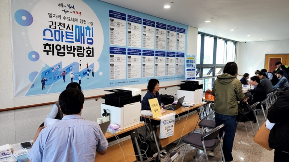 김천시는 지난 15일 김천시 근로자종합복지관 3층 대강당에서 구직자들의 높은 관심 속에 ‘김천시 일자리 스마트매칭 취업박람회’를 성황리에 마쳤다고 밝혔다.