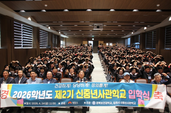경북보건대학교(총장 이은직)가 최근 교내 목인관 70주년 기념홀에서 ‘2026학년도 제2기 신중년사관학교 입학식’을 열고 신중년 세대의 새로운 시작을 알렸다.