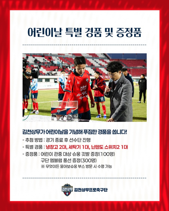 □ 어린이날을 완성할 김천상무 홈경기, 대박 경품 등 풍성한 이벤트 마련