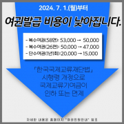 복수 58면 전자여권의 경우 국제교류기여금 3,000원 인하로 기존 53,000원에서 50,00.. [ 2024년 06월 03일]