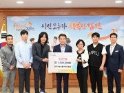 김천시농산물가공연합회 532김천밀맥주‘비어카스텔’김동하 대표, ‘정담두부집’손진환 대표, 호두먹빵‘투마루’김용준 대표, 우리꽃차‘테드티’황정식 대표는 지난 4월 11일부터 4일간 수원에서 개최된 식품박람회(수원 메가쇼 2024)에서 거둔 농식품 판매에 대한 수익금 일부(일백만 원)를 .. [ 2024년 05월 16일]