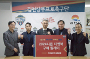 NH농협은행 김천시지부와 DGB대구은행 김천지점이 김천상무 티켓북 구매 릴레이에 동참했다. 김천상무프로축구단(대표이사 배낙호)이 14일 오전, 대표이사실에서 티켓북 구매 릴레이 행사를 진행했다. 행사에는 NH농협은행 박기화 김천시지부장과 DBG대구은행 소영섭 김천지점장을 비롯해 NH농.. [ 2024년 03월 15일]