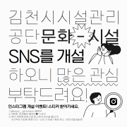 김천시시설관리공단은 공단 내 문화시설의 유용한 정보를 누구나 빠르고 간편하게 접할 수 있도록 SNS(사회관계망 서비스) 인스타그램 채널을 2024년1월2일 개설하였다... [ 2024년 01월 02일]
