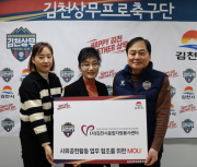 김천상무프로축구단이 지난 6일, ‘김천시종합자원봉사센터’ MOU를 체결했다. 이날 MOU에는 김천상무 배낙호 대표이사와 김경희 센터장, 이현경 팀장이 참석했다... [ 2024년 02월 08일]