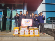 정문겸 자산동 영농회장과 자 정정화 씨는 15일 취약계층을 위해 백미 10kg 30포를 자산동 행정복지센터에 기부했다.