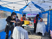 지례면 새마을부녀회와 지역사회보장협의체는 지난 14일 지례면 복지회관 전정에서 30여명의 어르신들을 모시고 떡국 나눔과 이미용 봉사 활동을 시행했다.
