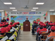 농소면은 지난 14일 행정복지센터 2층 회의실에서 가을철 산불 조심 기간을 맞아 『2023년 산불 예방 교육 및 결의대회』를 개최하여 산불에 대한 경각심과 책임감을 고취했다... [ 2023년 11월 15일]