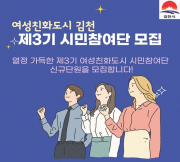 김천시는 오는 10월 30일부터 11월 10일까지 12일간 제3기 여성친화도시 시민참여단 40여 명을 모집한다.