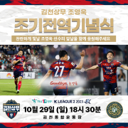 김천상무 프로축구단이 오는 29일 오후 6시 30분, 김천종합운동장에서 ‘하나원큐 K리그2 2023’ 37R 김포FC와 홈경기를 치른다. 지난 10월 7일, 김천상무 조영욱이 항저우 아시안게임에서 금메달을 수확하며 입대 후 264일 만에 조기 전역을 확정 지었다. 국군체육부대 남자축구.. [ 2023년 10월 24일]