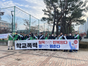 김천시청년새마을연대(회장 이동협)와 김천경찰서는 24일 아침, 율곡초등학교 및 율곡중학교 앞에서 학교폭력 근절을 위한 합동 캠페인을 전개했다... [ 2025년 11월 24일]