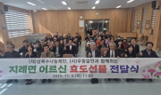 (재)상록수나눔재단 및 (사)우림일만(이사장 이상춘)은 지난 6일 지례면 예지원에서 ‘지례면 어르신 효도선물 전달식’을 개최하고, 어르신들께 효도선물을 전달했다.