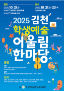 경상북도김천교육지원청(교육장 모태화)은 오는 10월 21일(화) 김천예술고등학교와 한일여자중학교에서 공연 행사를 열고, 김천시립도서관에서 전시 행사(21일-23일)를 통해 ‘2025 김천학생예술어울림한마당’을 개최한다... [ 2025년 10월 15일]