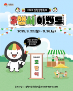 김천시는 오는 10월 25일부터 26까지 이틀간 열리는 ‘2025 김천김밥축제’의 분위기를 조성하고 홍보하기 위해 ‘김밥축제 캐릭터 꼬달이 삼행시 짓기 이벤트’를 개최한다... [ 2025년 09월 15일]