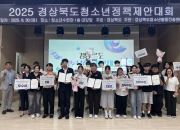 경상북도와 경상북도청소년활동진흥센터는 8월 30일 안동시 청소년수련관에서 청소년들의 창의적인 정책 아이디어를 발굴하고 도정에 반영하기 위한 ‘2025 경상북도 청소년정책제안대회’를 개최했다... [ 2025년 09월 01일]