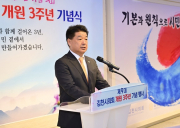 김천시의회는 7월 1일 오전, 시의회 1층 로비 및 청사 앞마당에서 나영민 의장과 시의원, 배낙호 시장, 최순고 부시장, 전직 의원, 의회 유관단체장 등이 참석한 가운데 ‘제9대 김천시의회 개원 3주년 기념행사’를 개최하며 지난 3년간의 의정 활동을 돌아보고 앞으로의 더 큰 도약을 다.. [ 2025년 07월 01일]