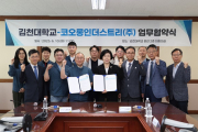 김천상무프로축구단이 6월 9일, 김천시청에서 (주)리워터의 후원금 전달식을 진행했다. 행사에는 김천상무 배낙호 구단주, 이재하 대표이사, 여영각 후원회장과 (주)리워터 김인석 대표이사, 김동국 경상권지사장, 이찬호 소장이 참석했다... [ 2025년 06월 10일]