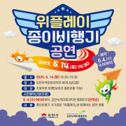 김천시는 오는 6월 14일(토) 오후 2시 30분 김천녹색미래과학관 2층 세미나실에서 종이비행기 국가대표팀 ‘위플레이’를 초청해 「종이비행기 곡예 공연」을 개최한다... [ 2025년 05월 30일]