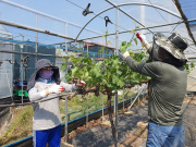 김천시 지좌동 행정복지센터는 14일 호동마을에 포도 재배 농가를 방문해 포도 봉지씌우기 작업을 도왔다... [ 2025년 05월 15일]