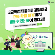 경북교육청(교육감 임종식)이 2025년 고교학점제 전면 시행을 앞두고, 학생들이 교육과정을 미리 설계해 보고 진로․진학 상담과 학습지도를 받을 수 있는 교육부 ‘함께학교(www.togetherschool.go.kr)’서비스 개통을 안내하며, 막바지 준비에 박차를 가하고 있다고 4일 밝.. [ 2025년 02월 04일]
