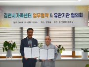 김천시가족센터와 업무협약은 상호 교류와 협력을 통해 공동발전을 도모하고, 위기 학생들을 위한 지역 내 복지서비스 증진을 목적으로 하고 .. [ 2024년 11월 07일]