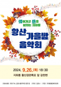 김천시 지좌동은 9월 26일 저녁 18시 30분 황산경관폭포 앞 감천변에서 황산 가을밤 음악회를 개최할 예정이다.