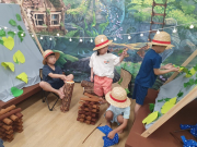 유아들은 나뭇잎과 넝쿨을 가지고 캠핑집을 만들고, 보자기에 도토리와 음식들을 챙겨서 모험을 떠났다. 캠핑장에 도착해서는 모닥불에 고기와 새우 등 음식들을 구워 먹으면서 즐거운 캠핑 놀이를 하였다... [ 2024년 08월 30일]