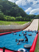 김천시시설관리공단은 기존 사계절썰매장의 착지구간에 풀장을 설치해 썰매를 타고 내려와 물에서 미끄러지는 형식의 체험을 제공하고 있다.